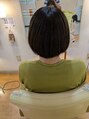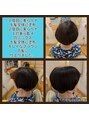 1度目に美らヘナを髪全体に施術。根元の新生毛と白髪の多い部分はヘナ特有のオレンジ色に。2度目に美らヘナ1対美ら藍4のミックスを髪全体に塗布。キレイなブラウンの髪色に。細い紙で癖毛のお客様ですがヘナで髪にハリコシが出て艷やかな仕上り。