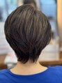 襟足を薄く少し長さを残したショートスタイル。ショートでも女性らしさのあるフェミニンな印象になります