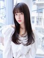 顔回りレイヤー/ぱっつん前髪/黒髪/ナチュラルロング/センター北