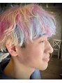 ブリーチ2回必要になります!全体にホワイトメッシュを細かく入れて、動きと立体感がしっかり際立つデザイン。パーマで柔らかく無造作な動きをプラスし、サイドから刈り上げですっきりとした印象に。スタイリングもワックスを揉み込むだけでOKです。
