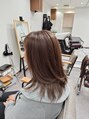 顔周りにレイヤーを足して、全体の厚みを取り重く見えないように。アメトリンに少しモーヴを足して黄色味が強く出すぎないツヤ感のあるベージュに♪黄色くなりやすい方や沈み込むアッシュは嫌だけど、柔らかいくすみ感が欲しい方にオススメ★