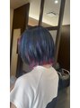 ブリーチありでできる個性はツートンカラー上はネイビーブルーでインナーはピンクカラー