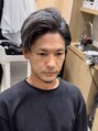 サイド、バックを少し長めの12mmで刈り上げた大人のかき上げヘア!セットはグリースをなじませるだけで簡単にセットができます。