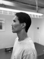 メンズオールバックスタイル。もみあげの部分のみかりあげ、それ以外はレイヤーを入れ毛流れを作りました。後ろは少しだけ長さを残し馴染ませるようにスライドカット。グリースとワックスを使用し7.3分にスタイリング。