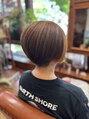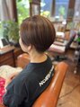 アシンメトリーのショートカットに独自のメッシュを入れオレンジカラーのアクセントをつけました!水素トリートメントで活性酸素を除去してありノーダメージに仕上がりました。