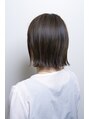 王道の切りっぱなしボブです。アイロンをまっすぐ入れて仕上げました。カラーは、マットベージュです。ベージュをベースにグリーンを重ねています。透け感がある色にしました。