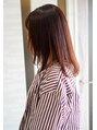 しっかりとした矯正で扱いやすく、ツヤのある髪に。ダメージを抑えながらピンクブラウンのやわらかい色味を表現し、毛先にはシャギーで軽やかさをプラス。自然な動きが出て、ナチュラルかつ上品な仕上がりに。