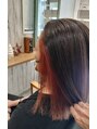 インナーカラーが鮮やかなオレンジなのでベースの色味はブラウンで落ち着かせてメリハリを☆