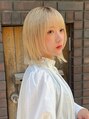 透明感のあるベージュです!ポイントはブリーチで抜きっぱなしにする事で、家で手入れだけしていただければ伸びるまでずっと綺麗なカラーでいられます!肌馴染みが良い色なので少し前髪を厚めに作ることで透け過ぎることはないです!