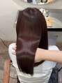 ほんのり赤みのあるボルドーブラウンでツヤ感たっぷりのストレートヘアに♪上品さと柔らかさを両立した大人かわいいスタイルです!
