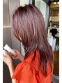【気に入ったスタイルはブックマークをしていただくと便利です】カットはセミロングレングスのレイヤースタイル。全体的にしっかりめにレイヤーを入れてラフな動きを。髪色は透明感のあるワインレッド。大人カジュアルなロングウルフスタイルです[薬院/警固]
