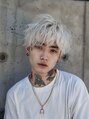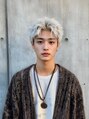 渋谷/フェザーショート 刈り上げセンターパート ホワイトブロンド エンドカラー 波打ちパーマ サーフカール