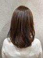 鎖骨下あたりでカットしたミディアムスタイル。ぺたっとしないようふんわりとボリュームを出すようレイヤーを入れました。前髪もお客様の髪質やお好みに合わせ似合うようにカット。前髪を作ると雰囲気が変わります。お色は10トーンのアッシュベージュ。