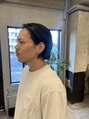 癖を活かした扱いやすいメンズボブスタイル。やや前上がりにカットラインを作り、耳にかけた際にバランスよく襟足が出るようカット。ヘアオイル+バームで簡単にスタイリングできます。