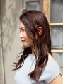 カットは全体と顔まわりにもレイヤーを入れているため大人っぽい印象に仕上げました。カラーは暗めのトーンでどんなシーンでも浮かないブラウンベースで肌馴染みの良いカラーになります。暗めでも重たい印象にならず垢抜けた印象に。