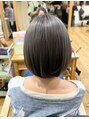 コンパクトボブにブリーチ2回カラー後グレー系カラーで透明感と艶を!