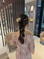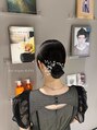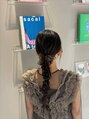 個性派モードなまとめ髪アレンジ!ツヤ感あるタイトなシニヨンに、ねじり編みを垂らした個性派まとめ髪。立体感と動きで後ろ姿まで印象的に。シンプルながらも、計算されたデザインが光るトレンド感たっぷりのスタイル。