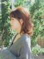 柔らかい雰囲気のミディアムレイヤースタイルです。肩につくくらいのレングスにし、色味も落ち着いたブラウンにすることで大人っぽい印象も出しつつ、顔まわりをスッキリさせることでフレッシュなスタイルに仕上げています。