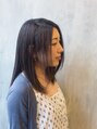バング長めのミディアムヘアースタイル!とってもシンプルなデザインで毛先を軽くカールすることで綺麗なつやのあるナチュラルストレートを演出できます!あまり派手な感じが苦手な方やお仕事されている方にオススメなスタイル!