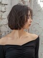 カットは重めのボブに、パーマで少し軽さが出るように仕上げています。カール感もさほど強めのパーマにはせずふんわり感がありながらしっとり感もあり大人っぽい印象に。カラーではこげ茶くらいのブラウンでオフィスでもどのシーンでもうけのいいカラーです。