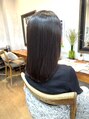 ぷつっと重ためのシルエットにカットをさせていただき、アマトラトリートメントで栄養を入れていきました。