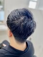 サイドはツーブロックで全体的にばっさりスッキリにカット!!前髪を下ろしたり、上げたり、分け目をつけたりなどいろんなスタイリングができちゃいます♪気分に応じてヘアスタイルを変えるのも楽しみになりますよ~