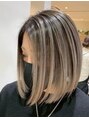 レイヤーカットアプリコットオレンジハイライトカラーボブヘア/ホットペッパービューティー