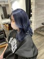 透明感たっぷりのブルーブラック。ブリーチで色素を整えてから深みのある寒色に仕上げました。エクステで自然に長さも出して、ミディアムからロングへ理想のスタイルを実現。