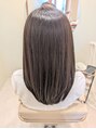 ダークトーンのアッシュグレーで落ち着いた色合いと透明感を出し、髪質改善カラーでツヤをプラス☆髪のうねりや膨らみを整える事で、暗くても重くない上品な仕上がりに♪