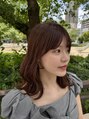 ややピンクみのある明るめのベージュ◯切りっぱなしベースに、顔周りは巻いた時に動きが出やすいように、少しだけレイヤーをいれて、コテで軽く巻いてオイルをサラッとつけるだけな、スタイリングが簡単なスタイルです!