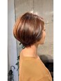 明るめの白髪染め。クセをいかしたふんわりなショートスタイルです。