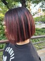 表面の分け目部分あたりをケアブリーチして、ピンクよりのボルドーを◯ボルドー以外も、暗めのピンクで、コントラストもしっかり!カットはミニボブで、オイルをさらっとつけるだけで、デザイン感も出るので、おすすめです!