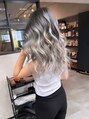 バレイヤージュ、ハイライト、レイヤーロング、グレーベージュ/ホットペッパービューティー