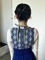 パーマのウェーブ状に出る癖を活かして、ヘアセットをしてみました。髪の長さはデコルテラインのワンレングスのスタイルなので、ツインでパーツごとにまとめて捻ってセットしています。