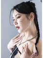 スモーキーなメイクとアップヘアでスタイリッシュなスタイルに。