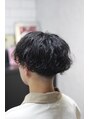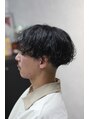 周りはさっぱりとテーパーフェードの2ブロックにセンターパートを合わせたスタイル。セットはバームかジェル、オイルワックスが◎