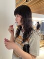 ワイドな前髪にウェーブのかかったパーマスタイル。顔まわりを残して緩く結んでも可愛いのがポイントです。