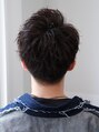 ショートヘアでもできるハーフバック。躍動感のあるパーマでスタイリングも楽しくなる