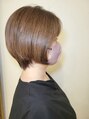 グラデーションボブ。襟足はタイトにスッキリさせ、サイドは小顔効果のある長さに設定。全体的に丸みのあるショートスタイル。イノアカラー施術。