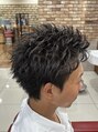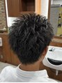 ピンピンの直毛スパイキーショートにピンパーマで緩く動くくらいの強さでシャープ感を残しつつ無造作に散る様にしました^_^直毛の方にオススメです!ビジネスマンにもオススメできるスタイルです^_^