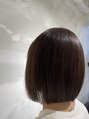 水平タッセルボブ直線的なラインの中に揺れる毛先がかっこいいデザイン。重く見えやすいボブをベージュのカラーと、毛量を調節することで涼しげに仕上げました。