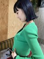 ダークパープル 、ダークブルーのような深みのある ダークカラー。にワイドなバングで少し 個性的に。