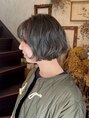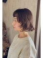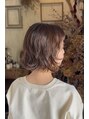 顔まわりに動きを出した、レイヤーボブスタイル。全体はミニマムに、元のクセを活かしてパーマ風にスタイリングしています。重めのボブからイメージチェンジしたい方におすすめです。