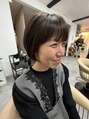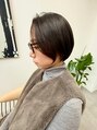 外はねも内巻きもできる切りっぱなしボブ。カラーは落ち着いたオリーブベージュで。首元をスッキリ見せたり、スタイルに合わせて長さを調整してCUT致します。