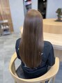 肩ラインでバランス良く、外ハネしやすいフラットなボブスタイル。肩に当たる長さはどうしても跳ねやすいので伸ばしかけの方にもオススメです。カラーはナチュラルなグレージュでどんな方にも合わせやすいカラーです。