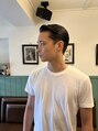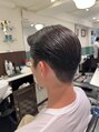 後ろはすっきり刈り上げ、横は後ろに流せるくらいの長さを残したスタイルです。前髪も少し長めに残しているので、センターパートに近いスタイリングも可能です!