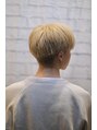 エアリーな束感のセンターパートスタイルです。金髪だと動きが見えやすくカジュアルな印象に。