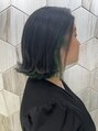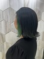 インナーを一度ブリーチしてから、鮮やかなグリーンをいれました☆表面はブルーグリーンのダークトーンにして、よりインナーが際立つように配色しました(^^)推し活をより楽しめるカラーです♪