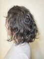 ミディアムウェーブ。くせ毛を活かしたウェーブスタイル。カットでくせ毛をパーマをかけているように見せる。