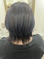 レイヤーを入れて、動きのあるショートボブスタイル。重く見えがちな黒髪に、さりげないブルーのハイライトで、光の加減で表情が変わるクールな印象に。襟足はシャープで首元を美しく見せてくれます。大人っぽさと遊び心があるショートスタイルです。